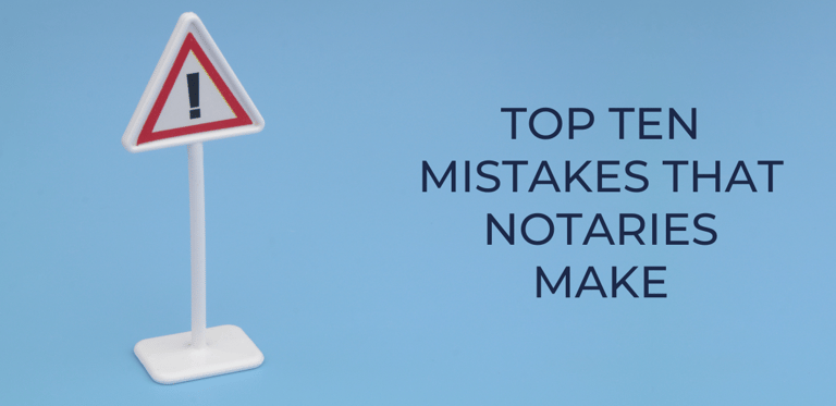 But even the best notaries can commit an error or overlook an important detail. Here is our “top 10” list of notary mistakes and oversights. (Note: these are our “top 10” in terms of troubling mistakes, not frequency.)